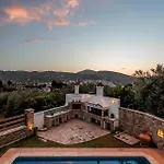 Voll ausgestattete Küchenzeile mit einem Wasserkocher, einem Kühlschrank und einem Herd wird in der Villa Alexandra'S angeboten. Verbringen Sie einen schönen Abend im Restaurant Ampeliki Restaurant, das weniger als 12 Gehminuten von hier entfernt liegt.
