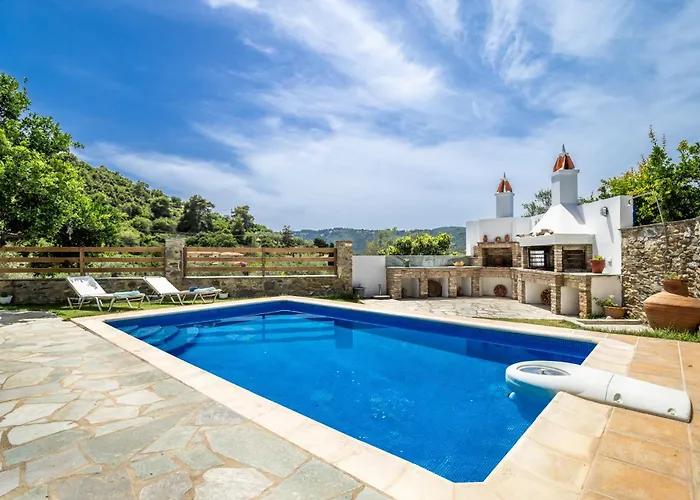 Die 2-Zimmer- Alexandra'S Villa Skopelos liegt lediglich 25 Gehminuten von der Venezianischen Burg entfernt und verfügt über eine Terrasse mit Blick aufs Meer. Diese Villa bietet einen Swimmingpool und liegt ca. 4 Kilometer vom Limnonari Strand entfernt.